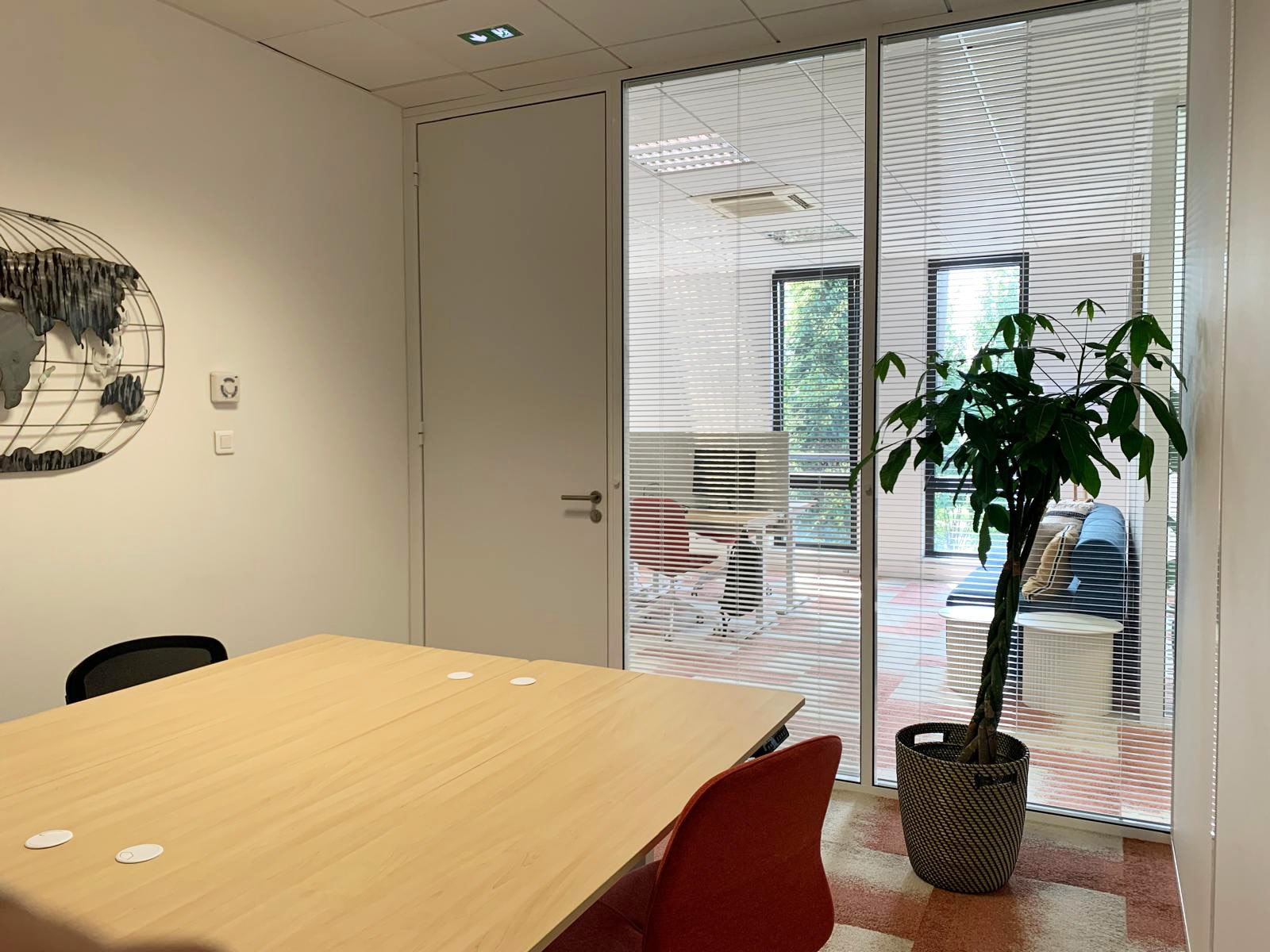Nous avons travaillé sur une composition simple et efficace : des volumes clairs, une base neutre, et des éléments décoratifs sobres pour conserver une atmosphère professionnelle, tout en rendant l’ensemble plus chaleureux.